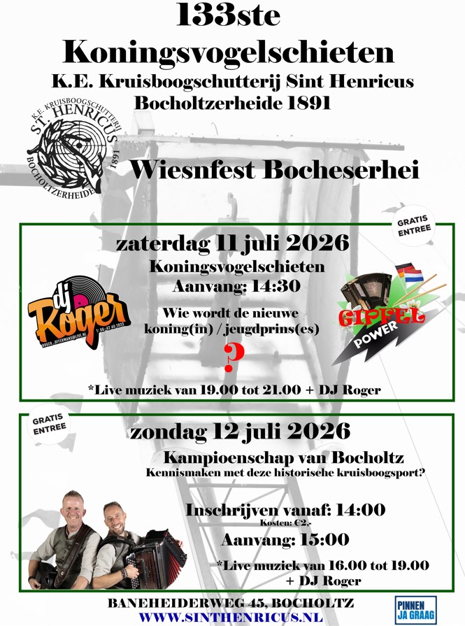 Welkom op de website van de K.E. Kruisboogschutterij Sint Henricus Bocholtzerheide 1891.
